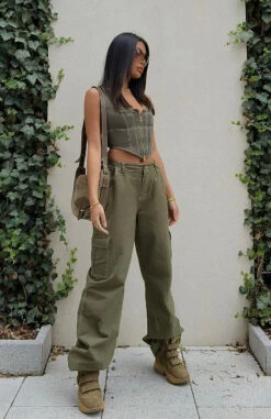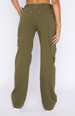 Channel everyday street style with the Back On Top Jeans in Khaki. These pants are high waisted and feature belt loops, buckle detail, front zipper and button closure, wide leg fit, printed logo centre back and pocket design on legs. We love this paired with a cute crop and sneakers for a cool girl fit.