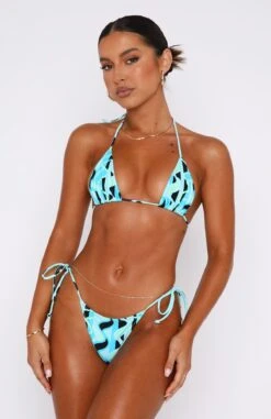Be the ultimate beach babe in our Cabo Bottoms in Arctic Geo. These bikini bottoms are a lined cheeky cut design with tie sides, gold plate at back with ruching detail on back. To compliment the bottoms pair with the Golden Hour Bikini Top in Arctic Geo.