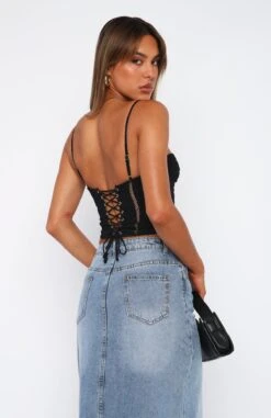 Feel stunning in our Don’t Use Me Bustier in Black. Featuring thin, adjustable straps, bust underwire, lace-up design centre back and lined fabric. Complete the look with your favourite pair of White Fox Denim Jeans and gold accessories for a look we love!
