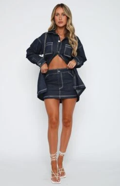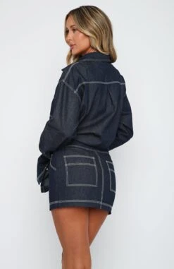 The set of your dreams is here! The Fading Out Mini Skirt in Indigo is high-waisted and features features button and zip closure and contrast stitching. We love this paired with the matching Knew You Were Trouble Shirt and knee-high boots for a dreamy combo!