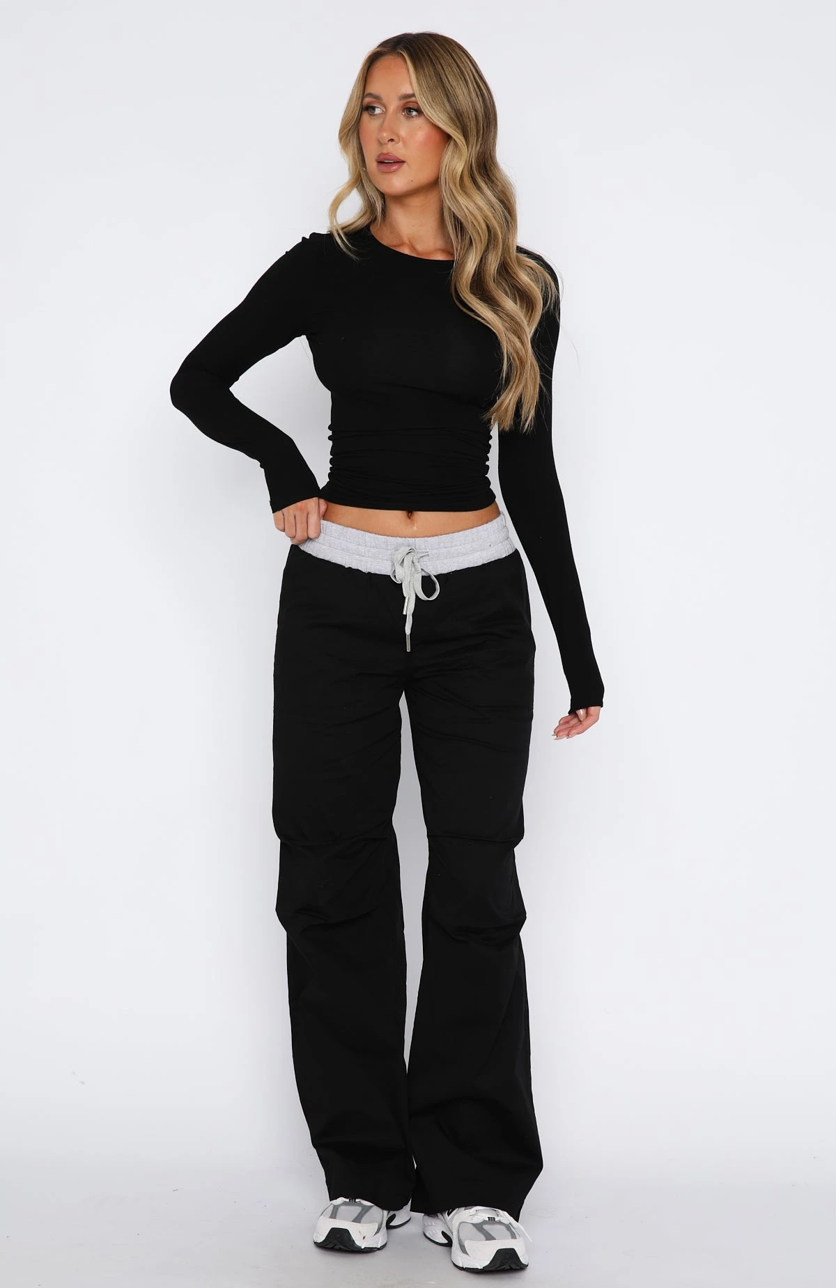 Grab yourself the Girl Next Door Low Rise Pants Black as the styling staple for the new season. Featuring a low rise fit, belt loops, drawstring and elasticated waistband, side pockets and a lightweight fabric. Keep it casual and pair it with a fitted tee and sneakers for a super cute look!