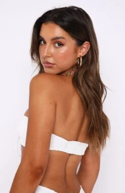 Look like a tropical goddess in the Hello Sunshine Bandeau Bikini Top in White. This lined bikini top features an elasticated back, adjustable tie centre front, textured fabric and removable padding. This bikini top can be worn multiple ways. Finish the look with one of our Sao Paulo bikini bottoms for a stand out look.