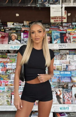 Minding My Business Ribbed Booty Shorts Black
