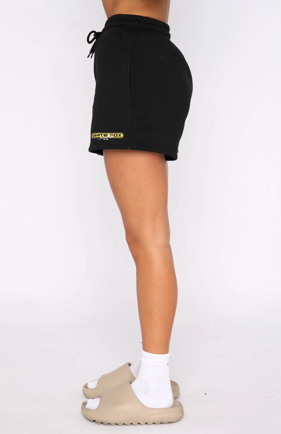 Give your loungewear wardrobe a seriously chic update with the So Predictable Lounge Shorts in Black. Featuring a loose relaxed fit with an elasticated high waistband with drawstring, side pockets, soft fleece fabric, and printed logo front side. Pair with the matching Impress Me Hoodie or Raw Moments Cropped Tee and sneakers to complete the look.