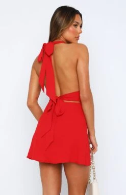 You’ll always be having a good time in the Sweet Fantasy Mini Dress in Red. Featuring halter neck with tie design, plunge neckline, backless design with tie detail, invisible zipper centre back and lined fabric. Pair with diamanté accessories and perspex heels for a look we are obsessed with!