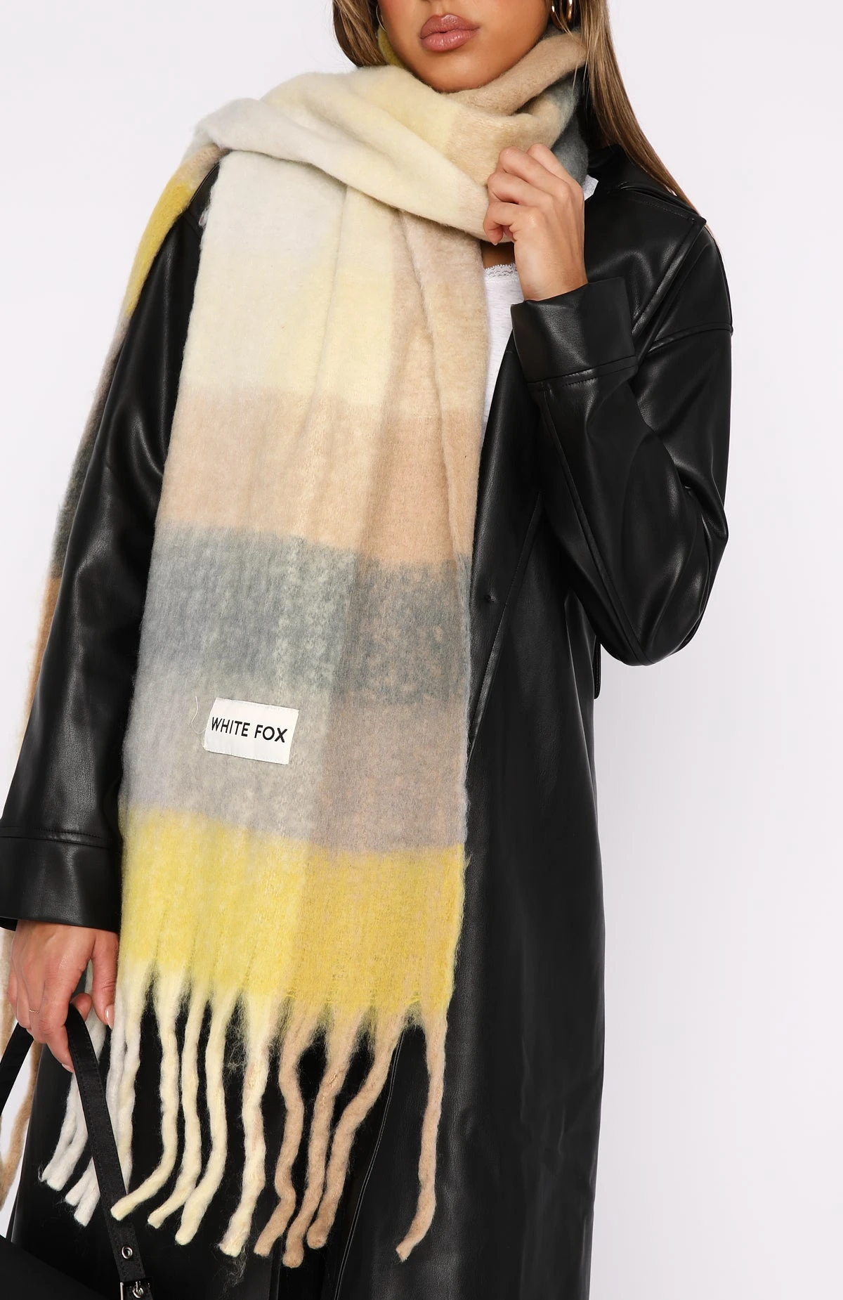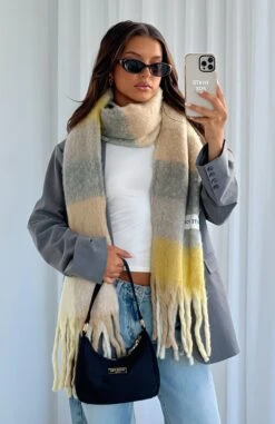 A wardrobe classic! This soft & warm knit scarf is super comfy and the perfect Moss shade. Featuring a warm knit material, tassel detail and a colourful paid print. Throw over any outfit and you’ll earn extra style points with it’s fun array of colours!